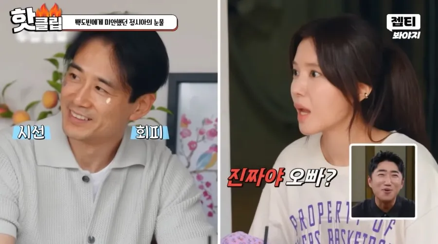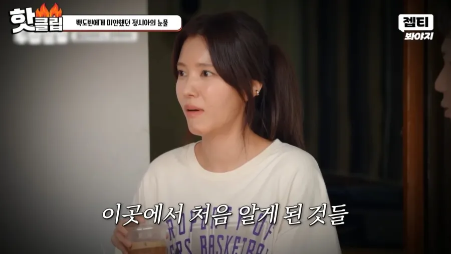 저녁을 먹은 후 대화는 이어졌다. 하루를 함께 보낸 정시아는 "내가 그동안 함께 살면서 바라본 오빠와 오늘 (홍현희, 제이쓴을) 처음 만났는데 그 사람들을 통해서 바라보는 오빠가 저는 내가 제일 잘 안다고 생각했는데 오히려 몰랐던 부분이 있었구나라는 생각이 들었다. 그래서 미안하기도 하고"라며 왈칵 눈물을 쏟았다.